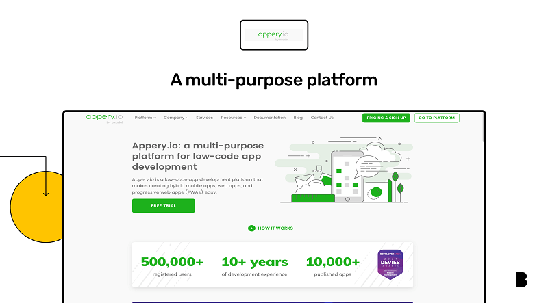Appery boasts more than 10 years of experience and half a million users. The unique thing about Appery is that it is built entirely on the Cloud, so you don’t need to download or install anything in order to build your app.